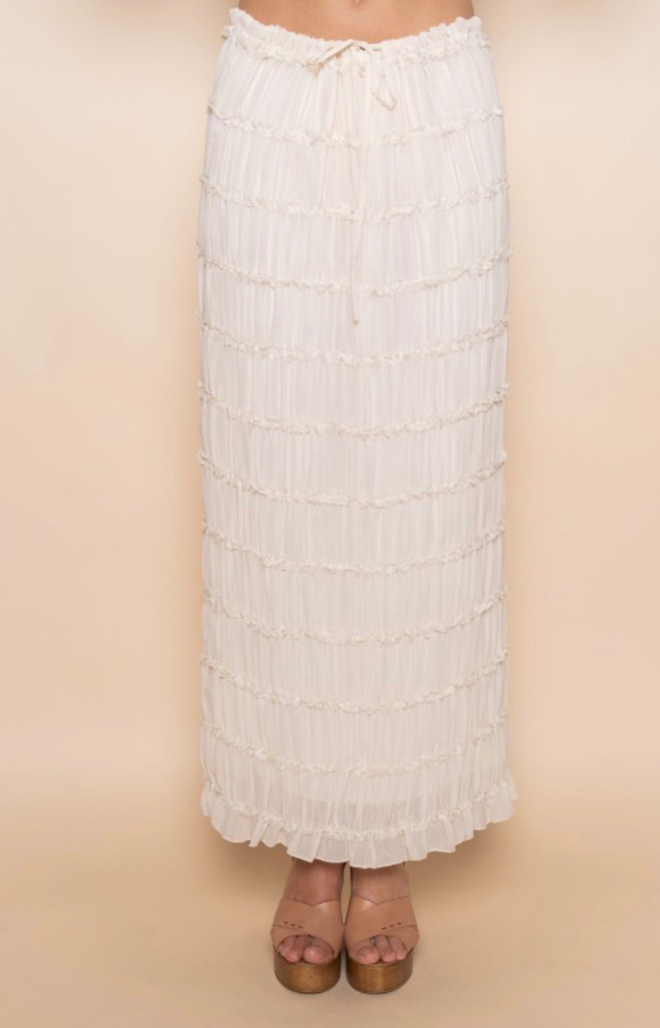 Cream Lace Tier Midi Skirt