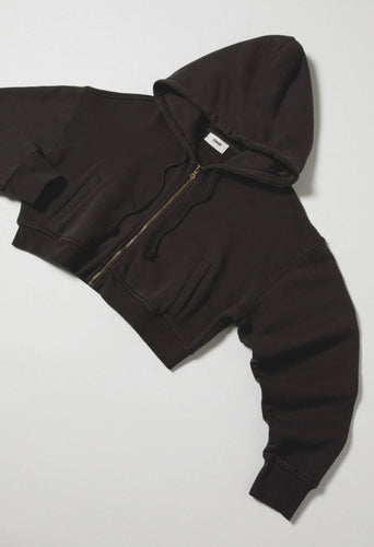 Babydoll Crop Zip Hoodie 2.0- Vintage Black